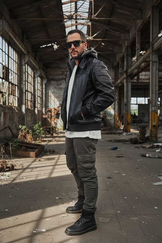 Μπουφάν bomber δερματίνη με επένδυση εσωτερικά και κουκούλα