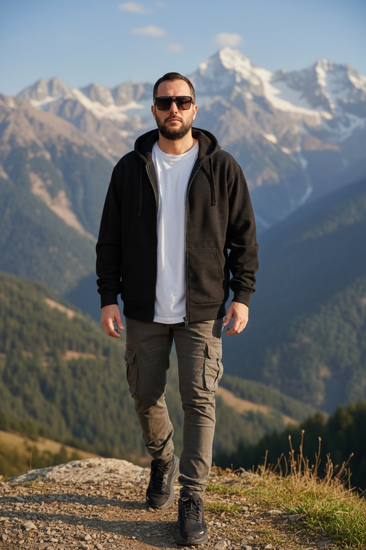 Ζακέτα φούτερ casual με κουκούλα σε french terry