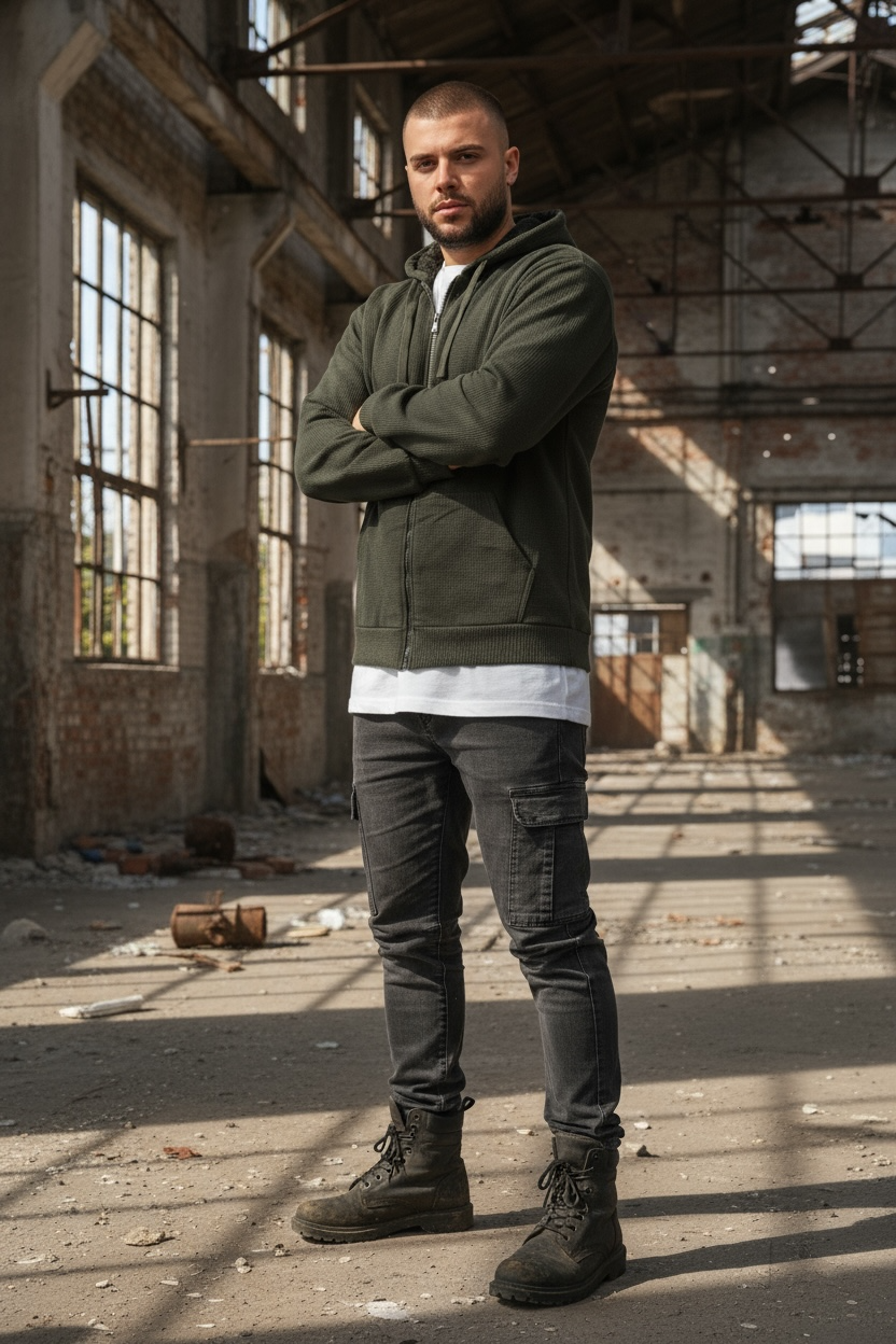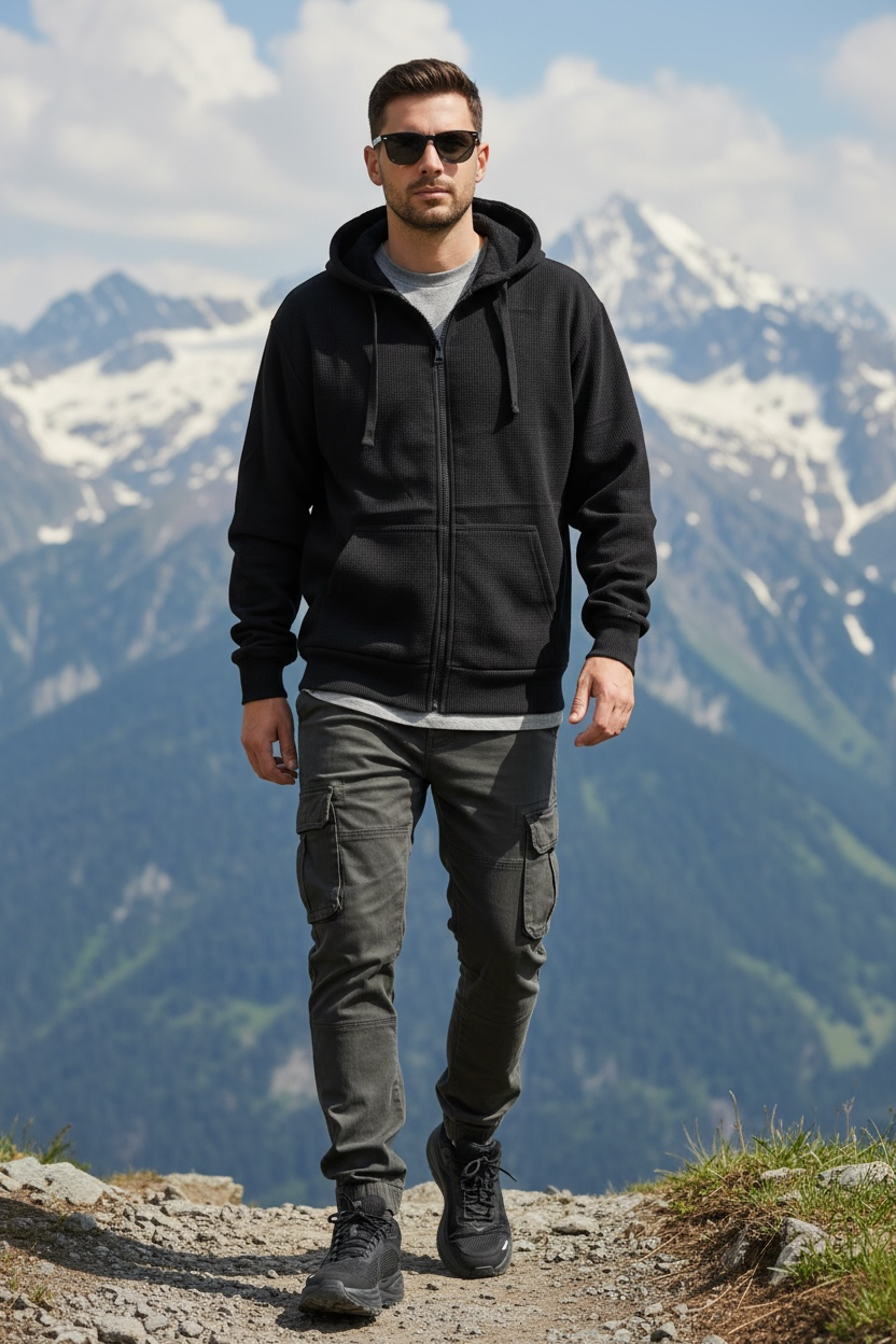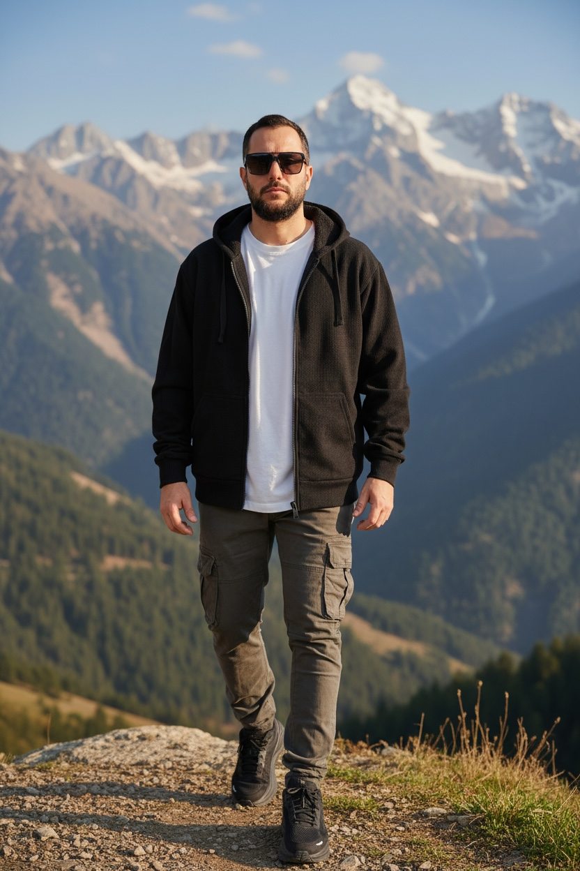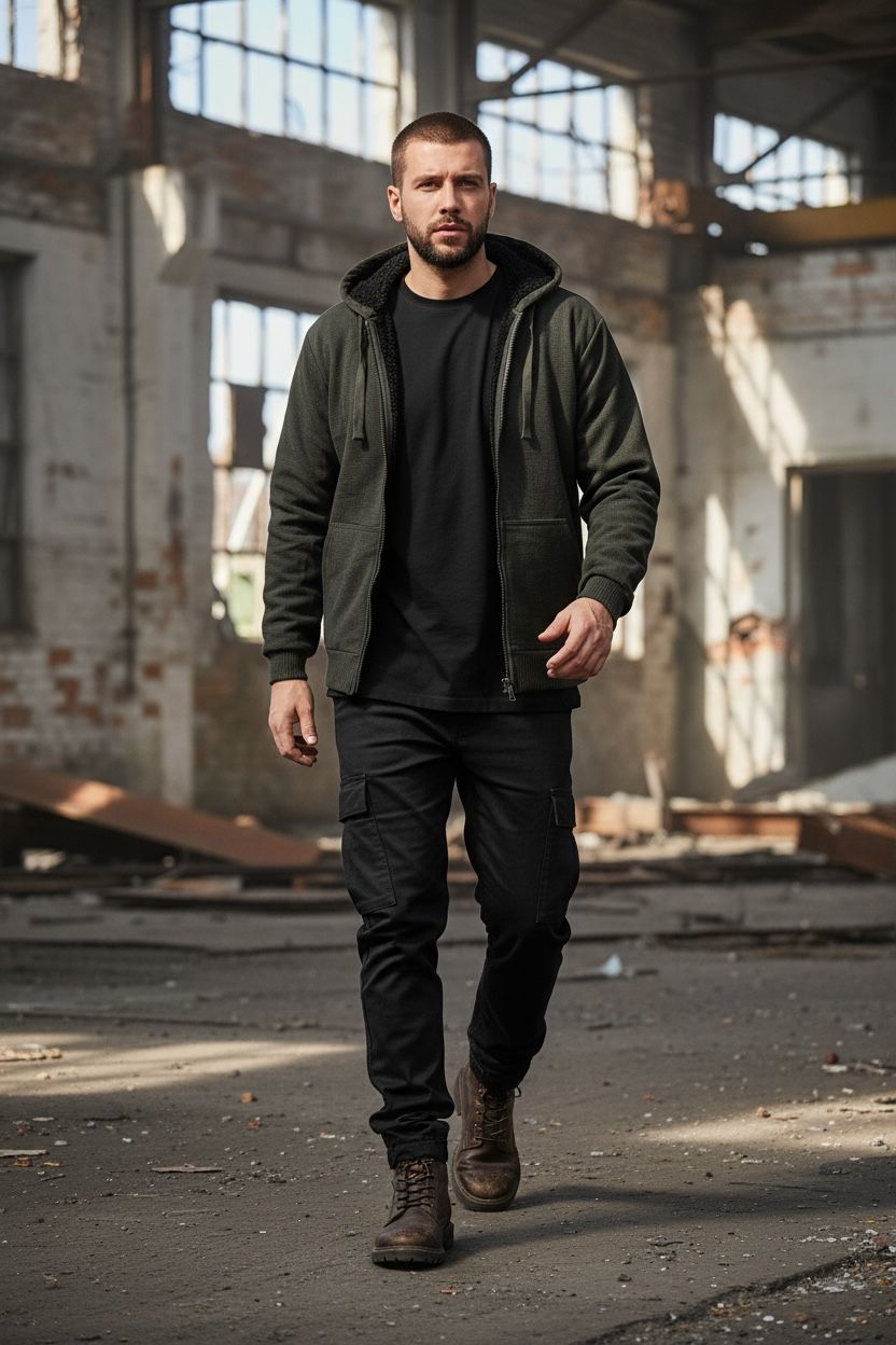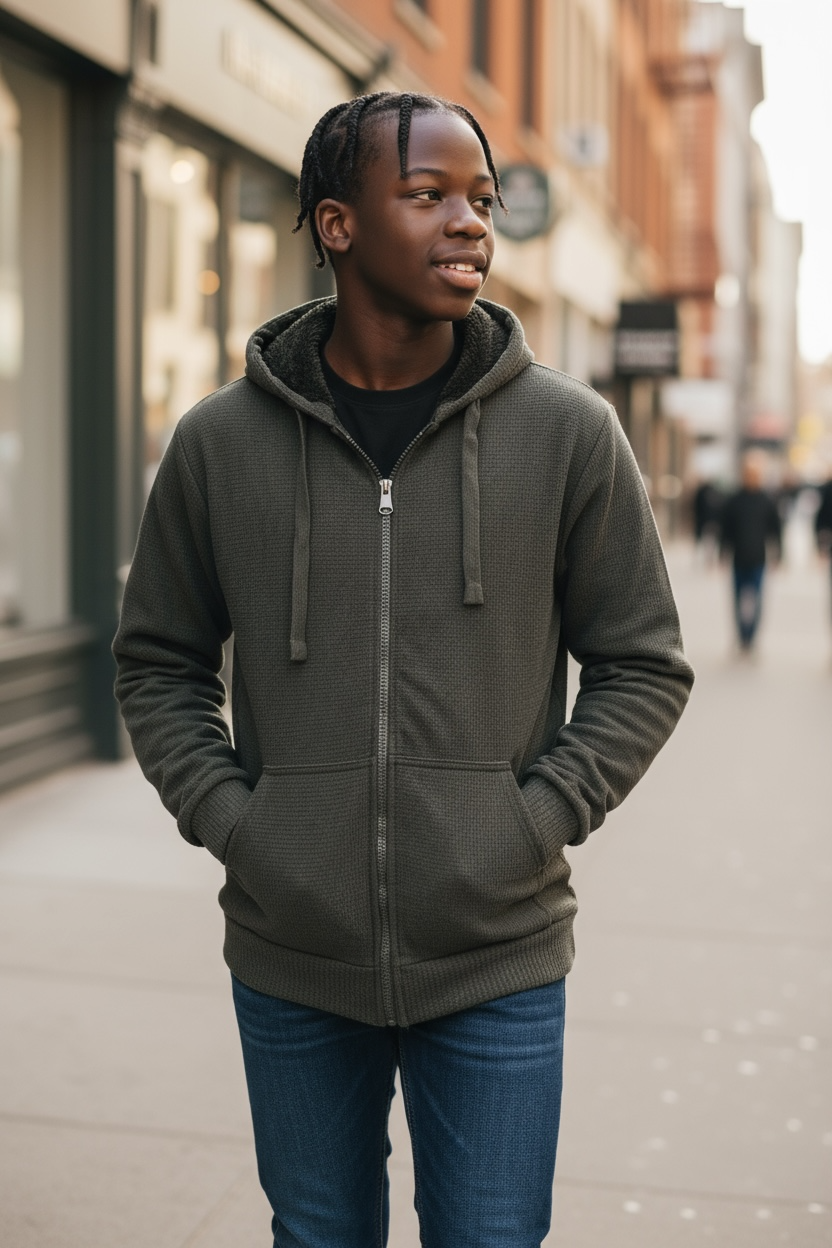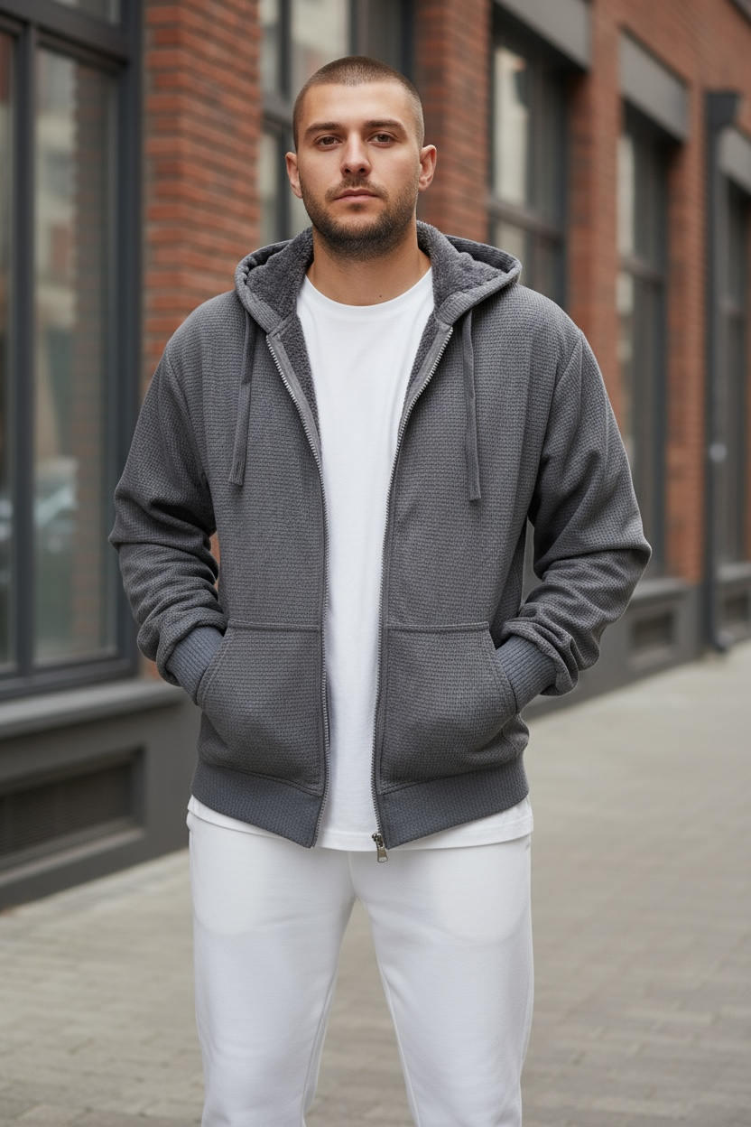 Ζακέτα ζακάρ με επένδυση γούνας εσωτερικά και κουκούλα slim fit