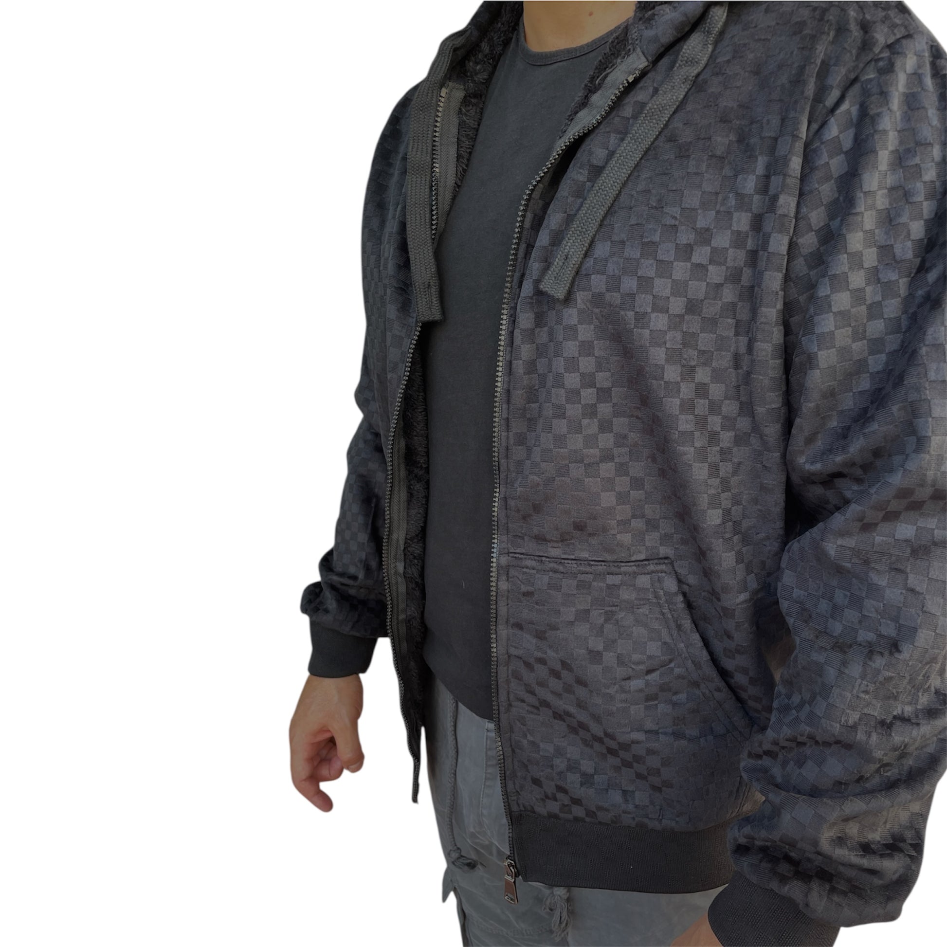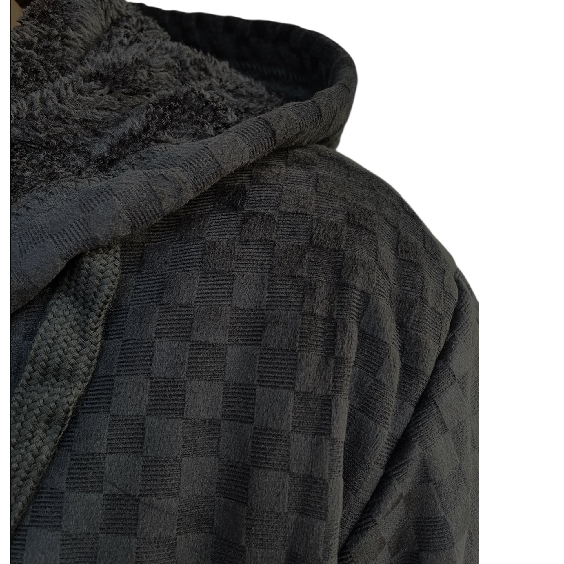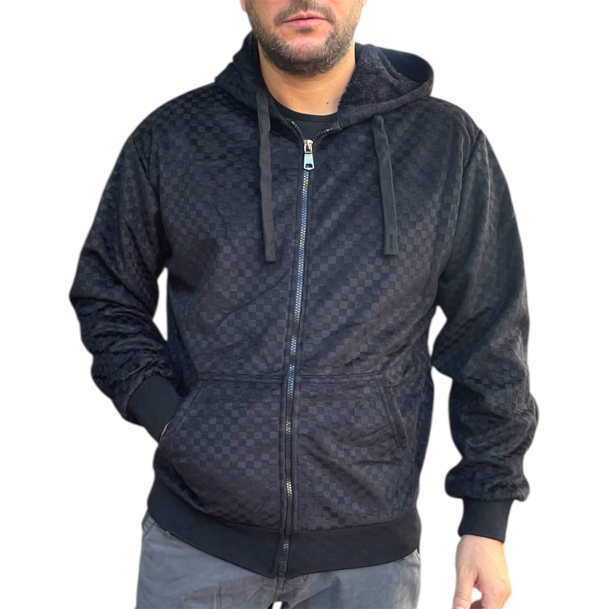 Ζακέτα πλεκτή ζακάρ με επένδυση γούνας εσωτερικά και κουκούλα slim fit