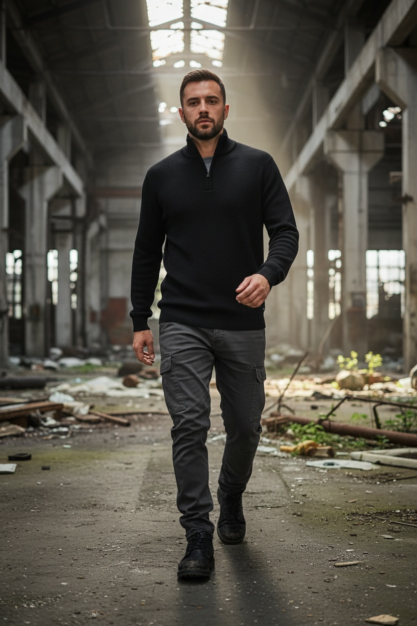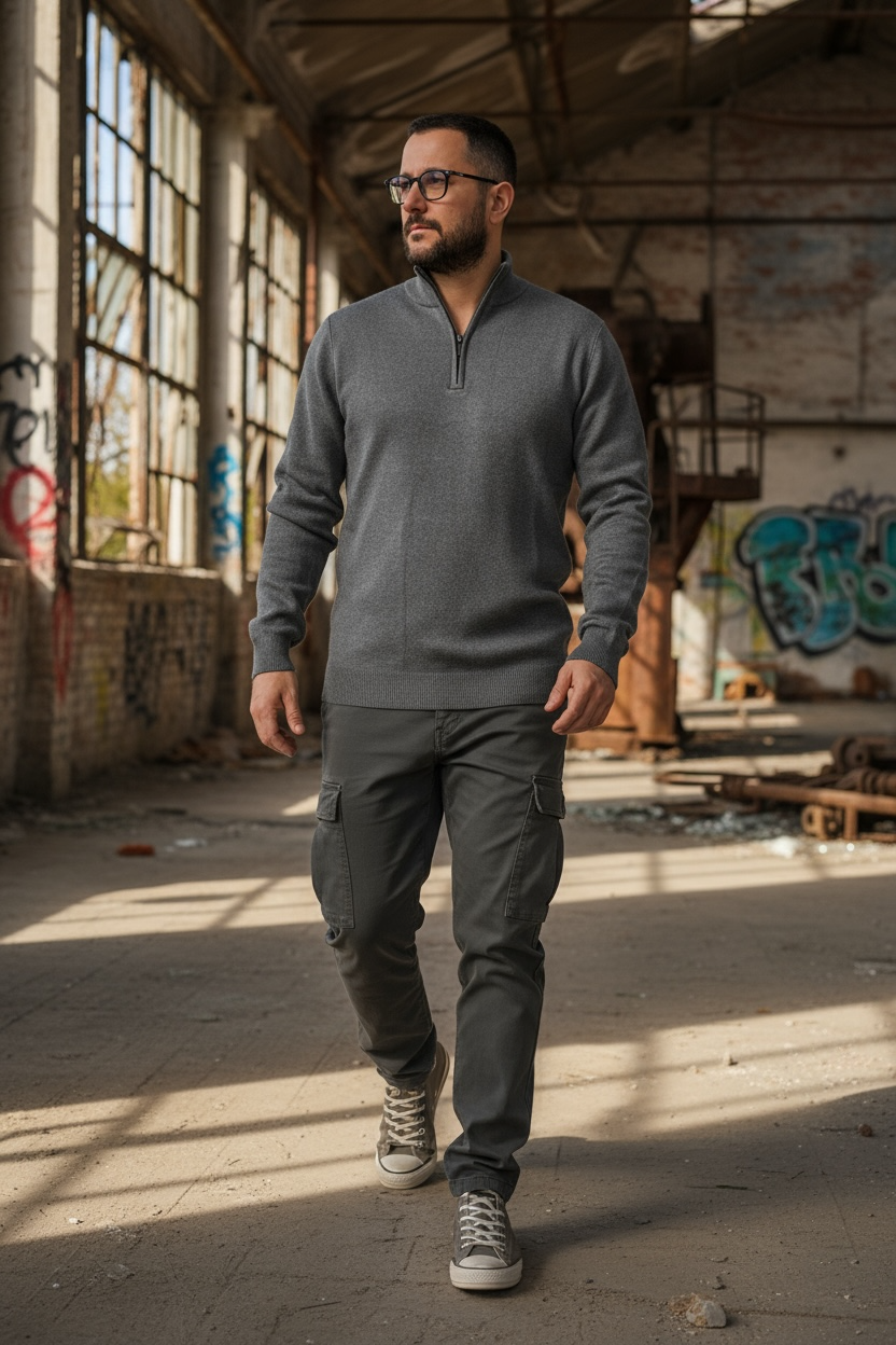 Το μοντέλο είναι 1,77 ύψος και 85 κιλά και φοράει large